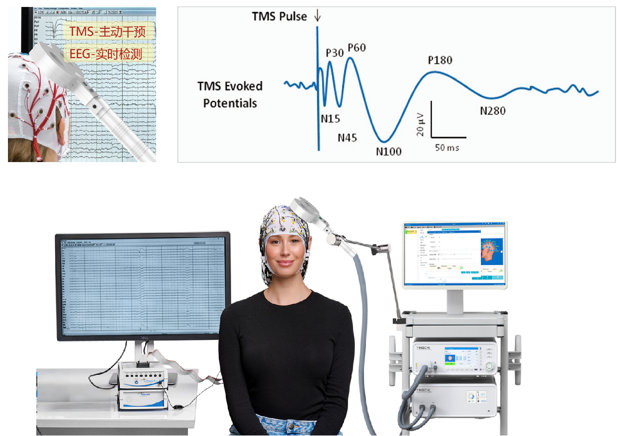 经颅磁刺激同步脑电图(TMS-EEG)技术是顺利获得TMS非侵入性地激活大脑特定区域,并结合EEG实时记录大脑的电活动,以评估大脑的功能连接性和神经网络动态的技术。